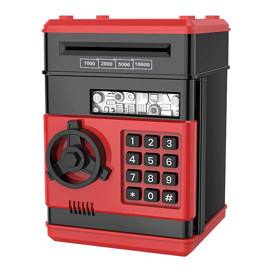 The default password is 0000. Kids can use this code to open the bank and store their money safely.