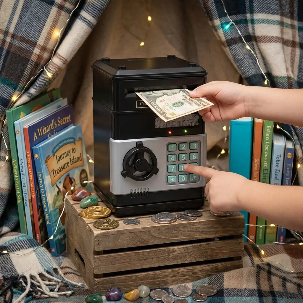 Turn everyday saving into an exciting activity kids look forward to. This interactive piggy bank automatically pulls in banknotes and stores coins safely inside, making it feel like a real mini safe.